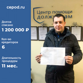 Списано долгов на 1 200 000 р. за 11 месяцев. Кол-во кредиторов - 6 шт.
