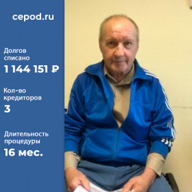 Списано долгов на 1 144 151 р. за 16 месяцев. Кол-во кредиторов - 3 шт.